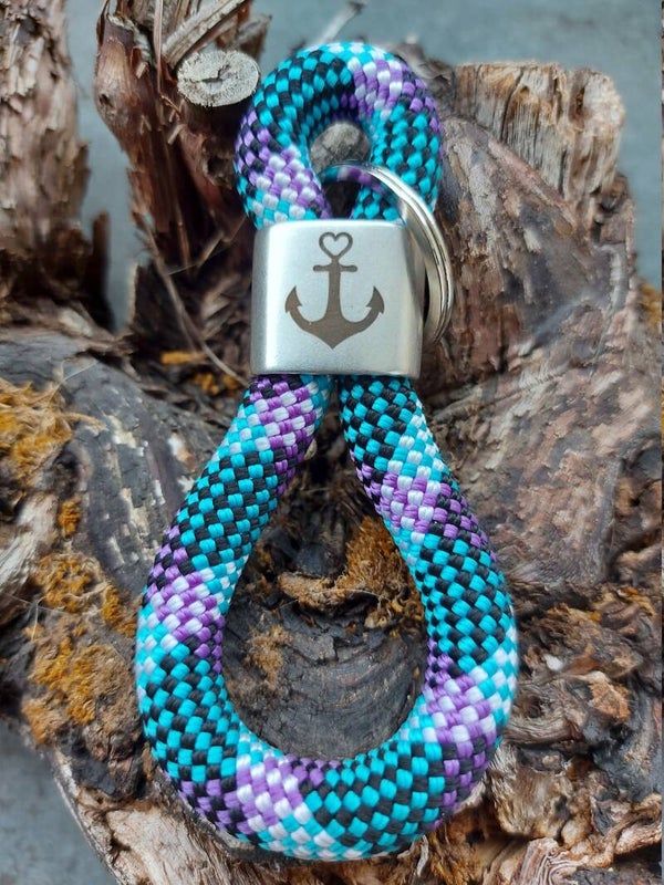 Schlüsselanhänger in Achterform, Zwischenstück aus Zinkdruckguss silberfarben „Anker Herz“