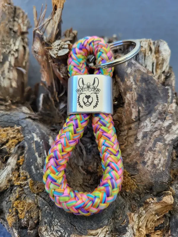 Schlüsselanhänger in Achterform, Zwischenstück aus Zinkdruckguss silberfarben „Lama/Alpaka“