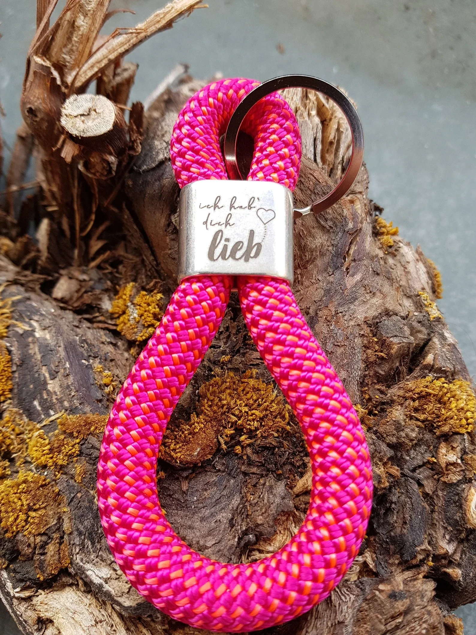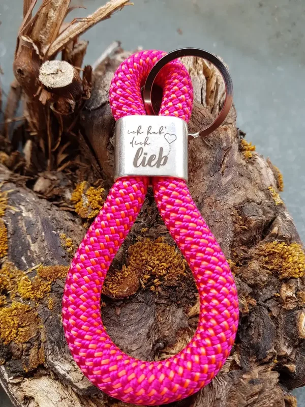 Schlüsselanhänger in Achterform, Zwischenstück aus Zinkdruckguss silberfarben „ich hab' Dich lieb“