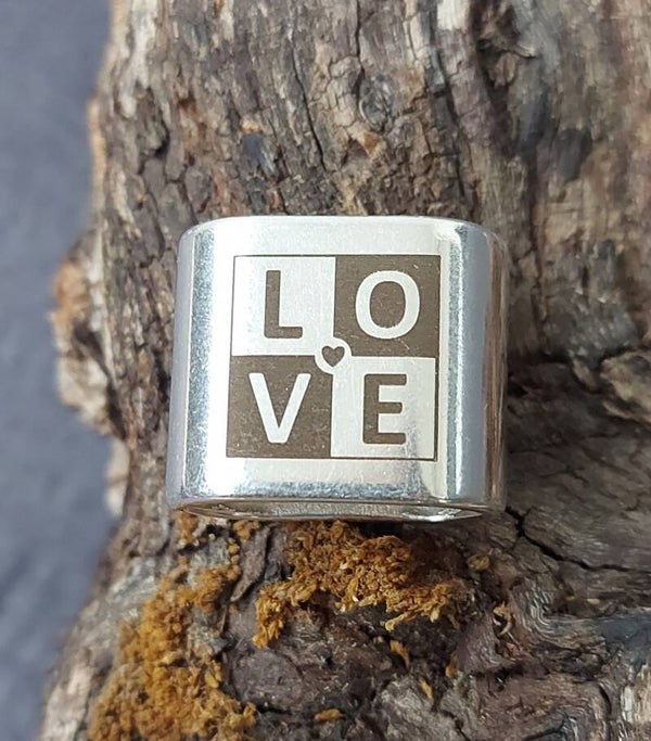 Schlüsselanhänger in Achterform, Zwischenstück aus Zinkdruckguss silberfarben „LOVE“