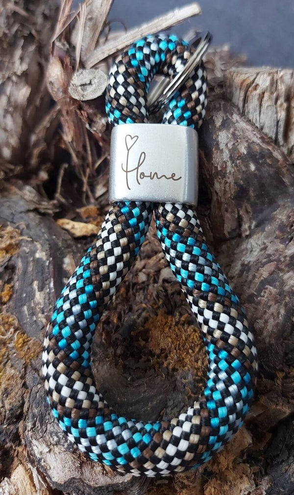Schlüsselanhänger in Achterform, Zwischenstück aus Zinkdruckguss silberfarben „Home“