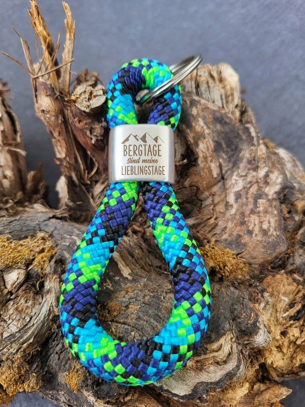 Schlüsselanhänger in Achterform, Zwischenstück aus Zinkdruckguss silberfarben „Bergtage sind meine Lieblingstage“
