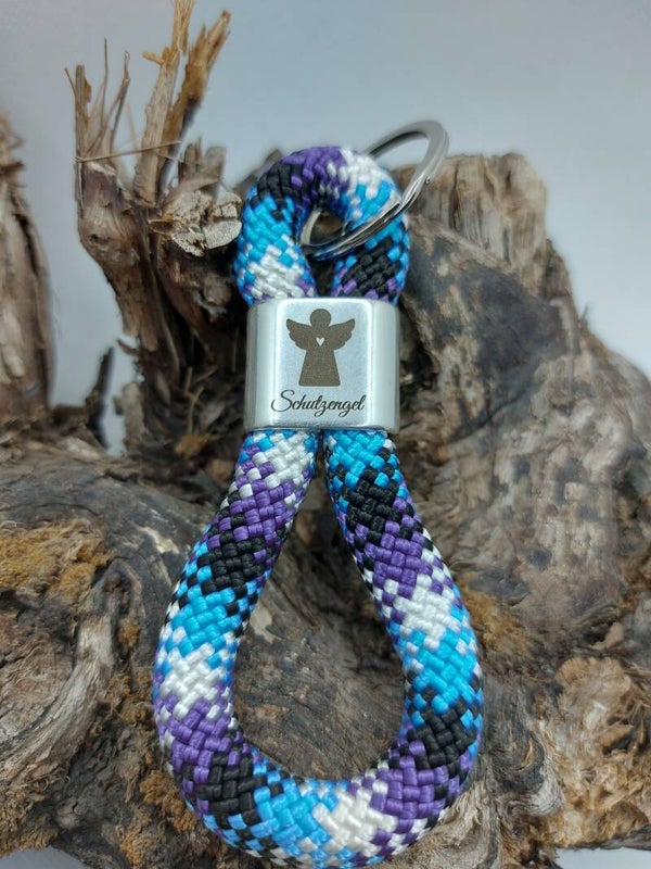 Schlüsselanhänger in Achterform, Zwischenstück aus Zinkdruckguss silberfarben „Schutzengel“ mit kleinem Herz