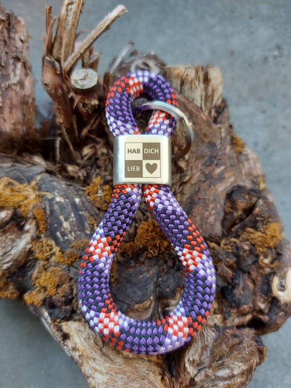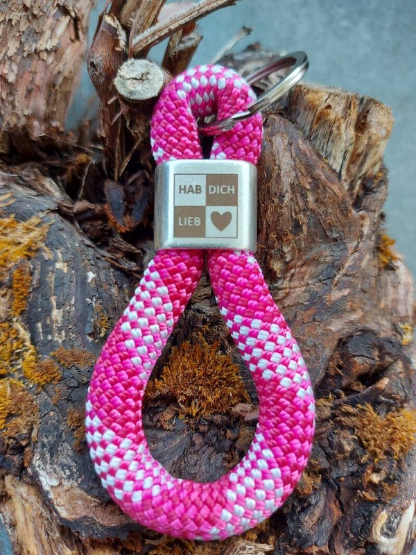 Schlüsselanhänger in Achterform, Zwischenstück aus Zinkdruckguss silberfarben „Hab Dich lieb“