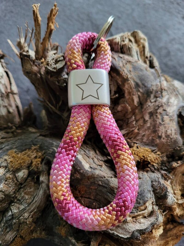 Schlüsselanhänger in Achterform, Zwischenstück aus Zinkdruckguss silberfarben „Stern“ Linien