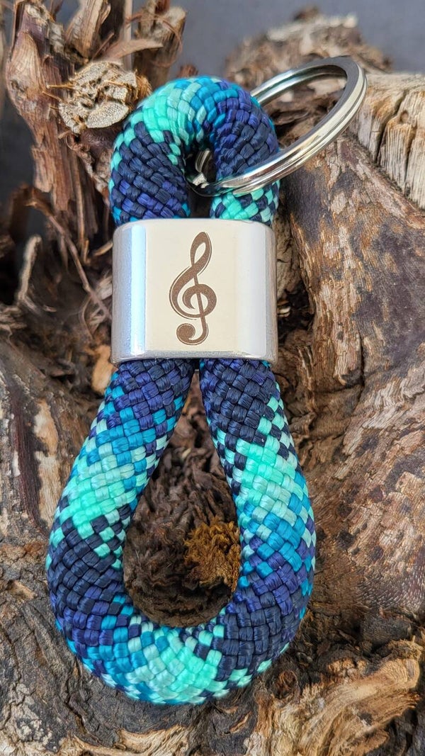 Schlüsselanhänger in Achterform, Zwischenstück aus Zinkdruckguss silberfarben „Notenschlüssel“