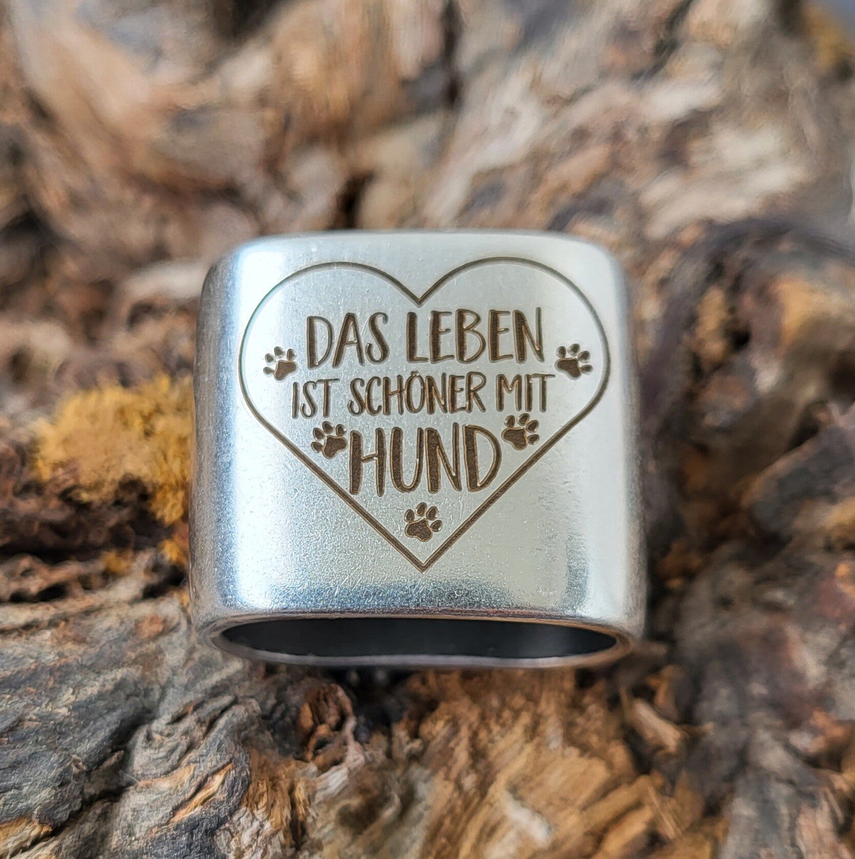 Schlüsselanhänger in Achterform, Zwischenstück aus Zinkdruckguss silberfarben „Das Leben ist schöner mit Hund“
