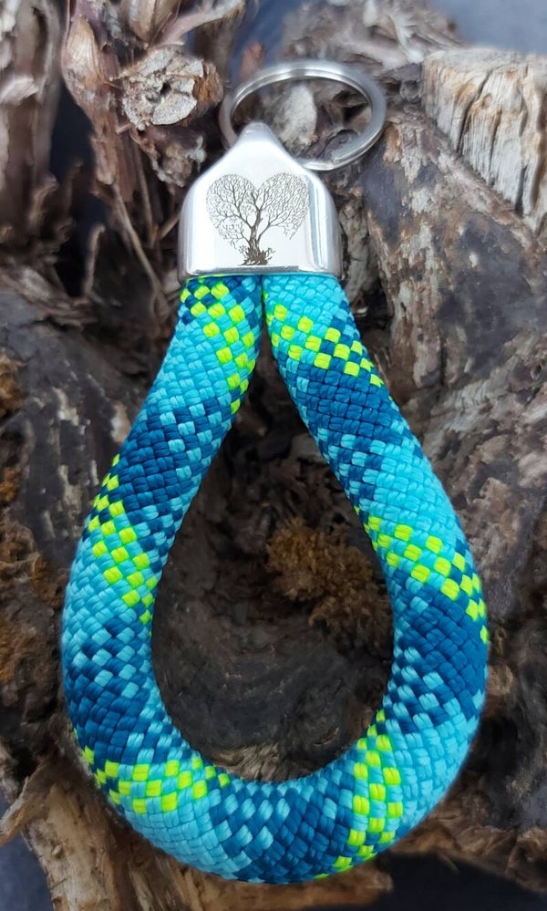 Schlüsselanhänger in Tropfenform, Endkappe aus Zinkdruckguss silberfarben „Herz-Lebensbaum“