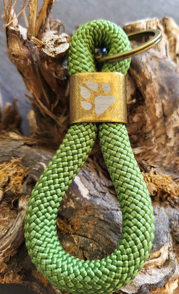 Schlüsselanhänger in Achterform Zwischenstück aus Zinkdruckguss „Pfote“ Antik Messing