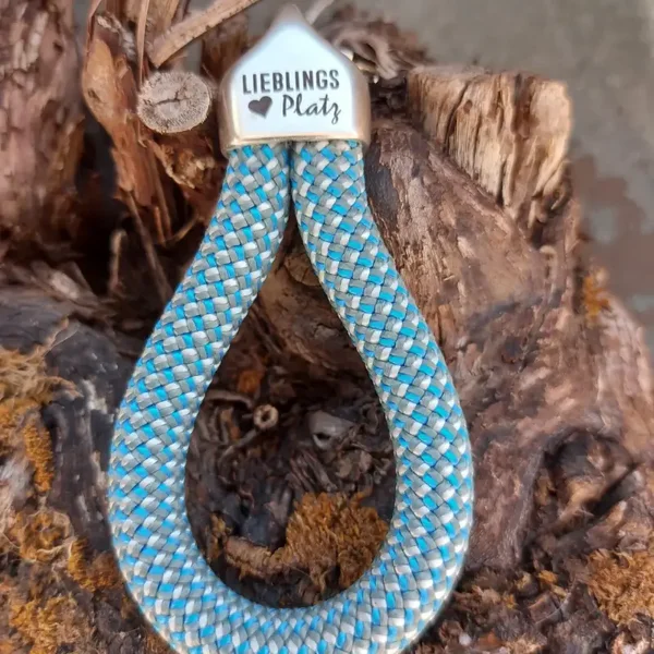 Schlüsselanhänger in Tropfenform, Endkappe aus Zinkdruckguss silberfarben „Lieblingsplatz“ Herz